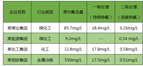 3.结合钙盐处理效果更佳,高效除氟剂投加量根据现场情况和小试方案进行适当调整。